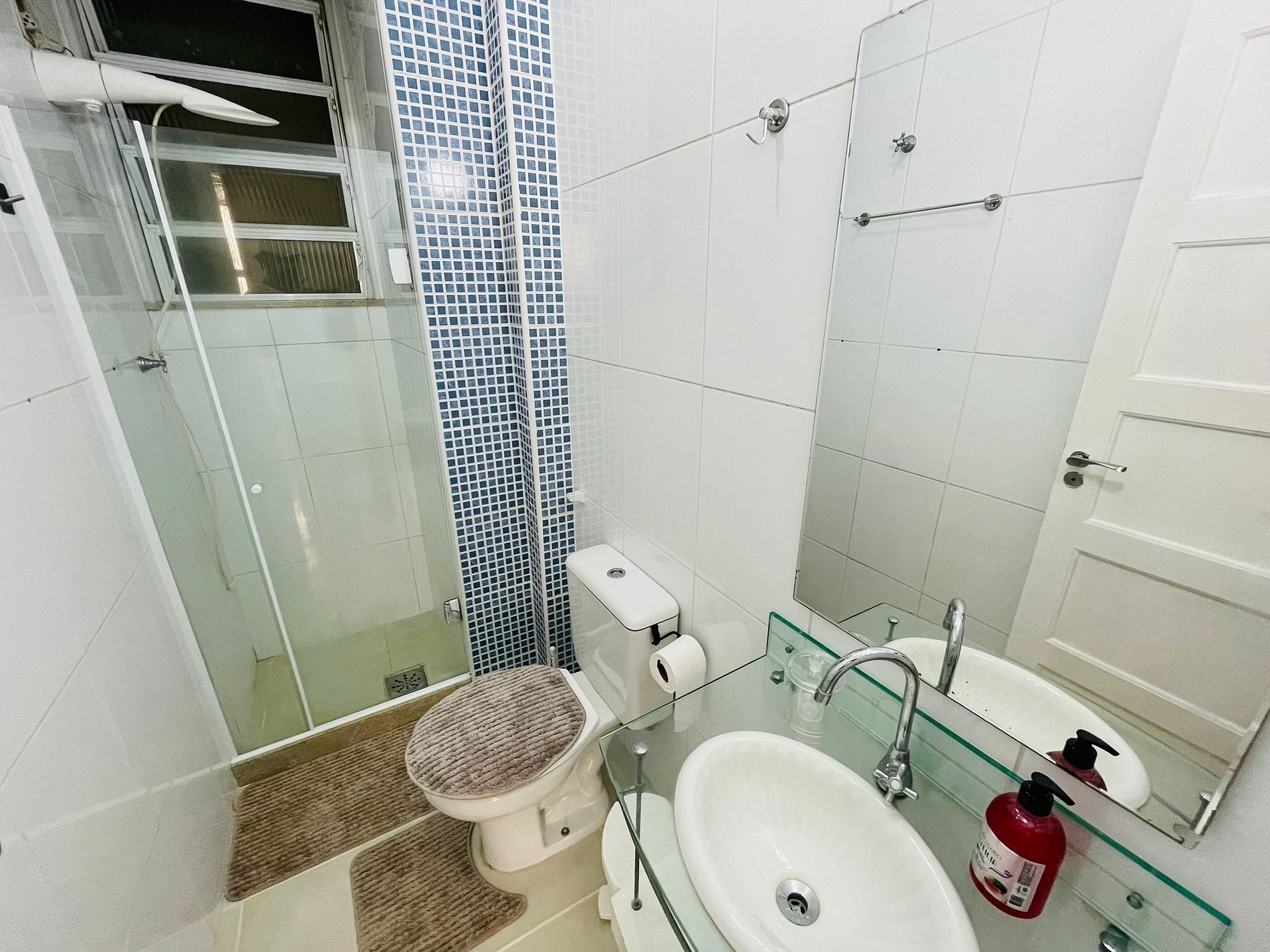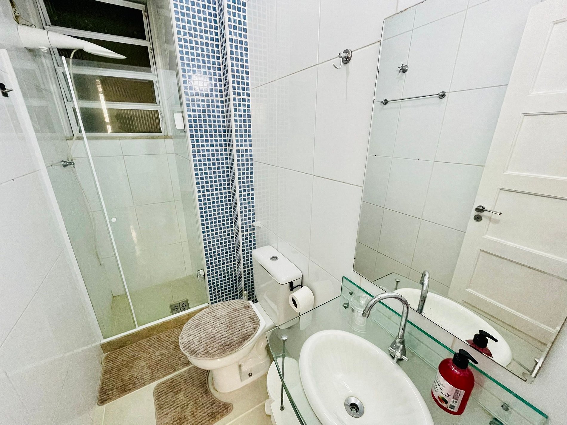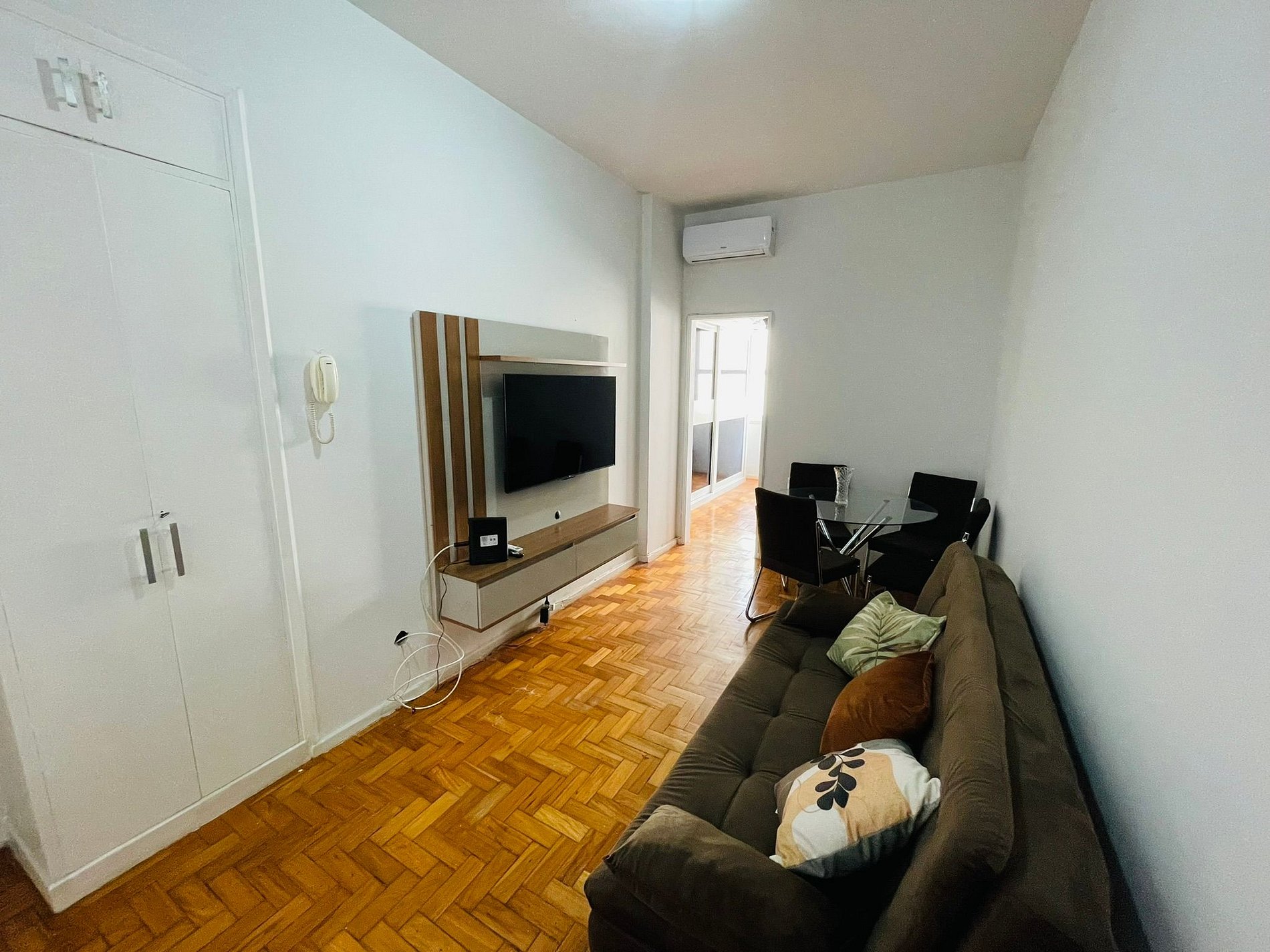 Conheça o nosso excelente sala e quarto para 3 pessoas em Copacabana. A sala conta com um sofá-cama de solteiro, mesa de jantar com 4 cadeiras, TV digital, Wi-Fi e ar condicionado split. No quarto: cama de casal, TV digital, guarda roupas e ar condicionado split. O apartamento também conta com banheiro equipado com box blindex e chuveiro elétrico. Na cozinha tem tudo do que você precisa: fogão, forno, geladeira e sanduicheira.