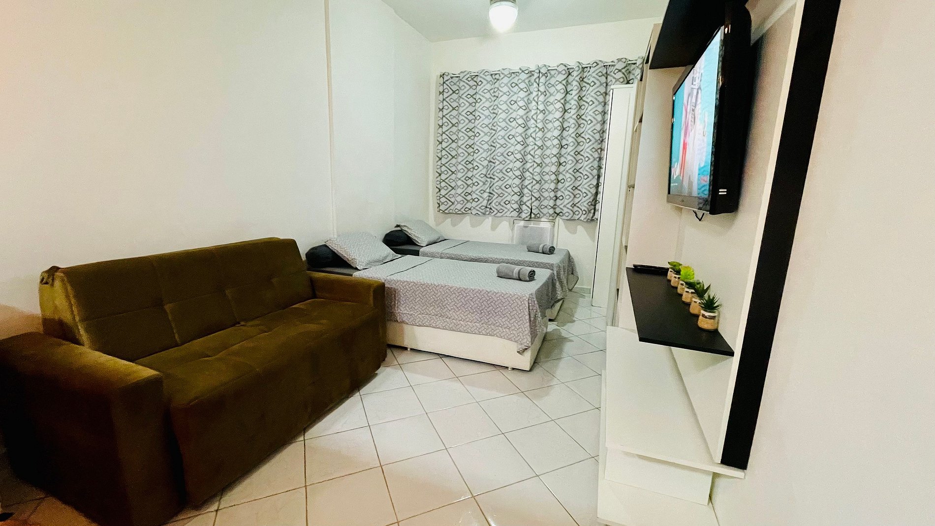 Aconchegante estudio no Leme a passos da orla! Possui todos os itens necessários para uma estadia confortável! Wi-Fi, TV com Netflix, ar condicionado, armário, duas camas de solteiro e um sofá-cama. Pequena cozinha americana completa com geladeira, microondas, cafeteira, cooktop, airfryer e outros utensilios. Banheiro com box blindex.