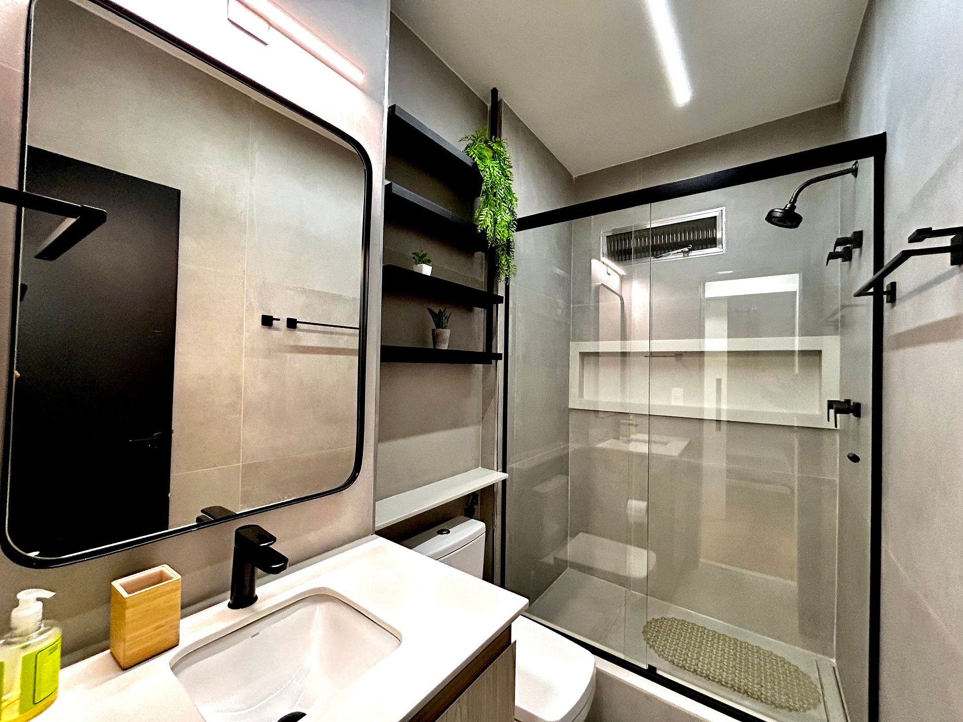 Banheiro com ducha a gás (Aquecedor fora do banheiro).