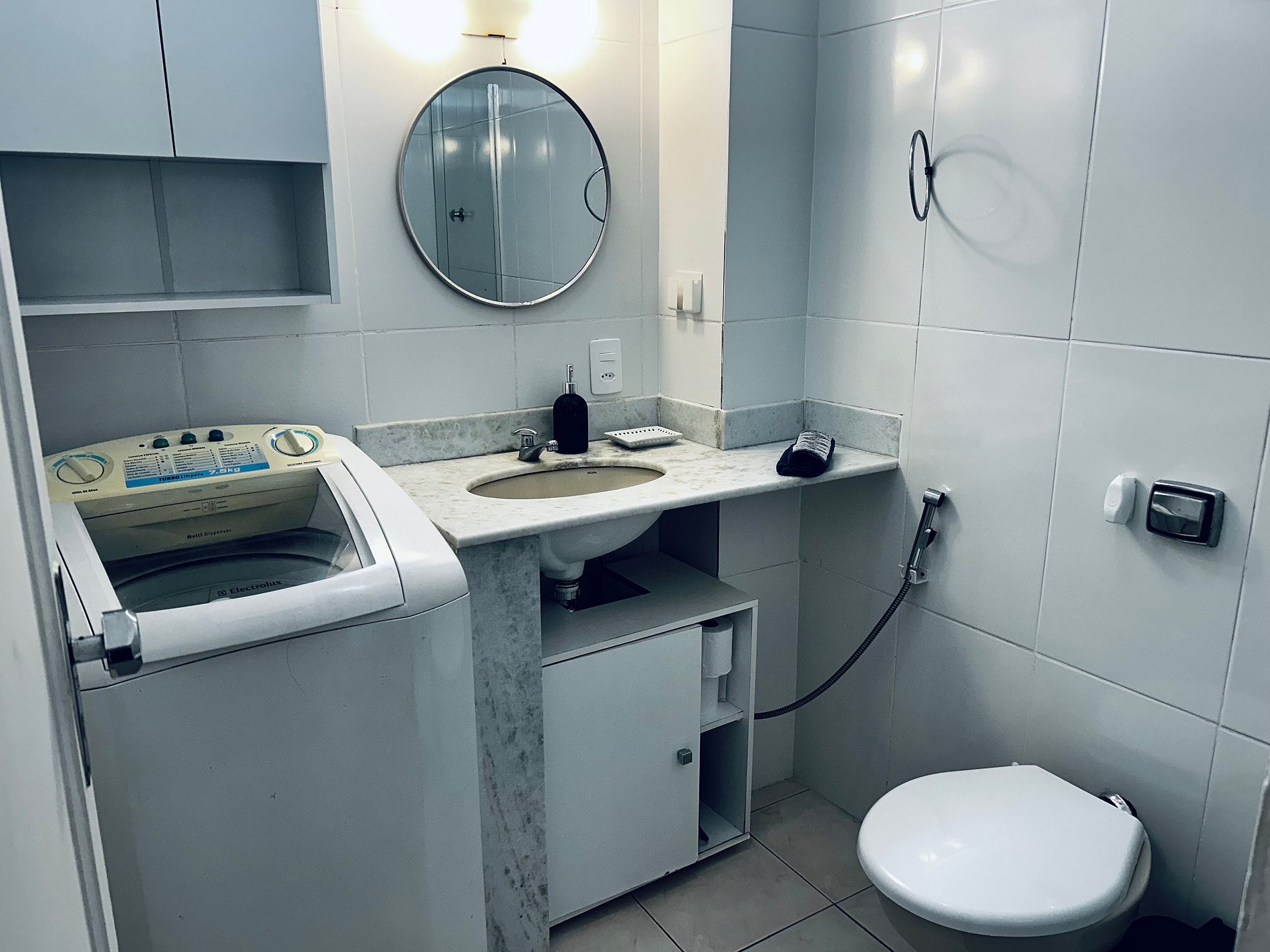 Maquina de Lavar no banheiro