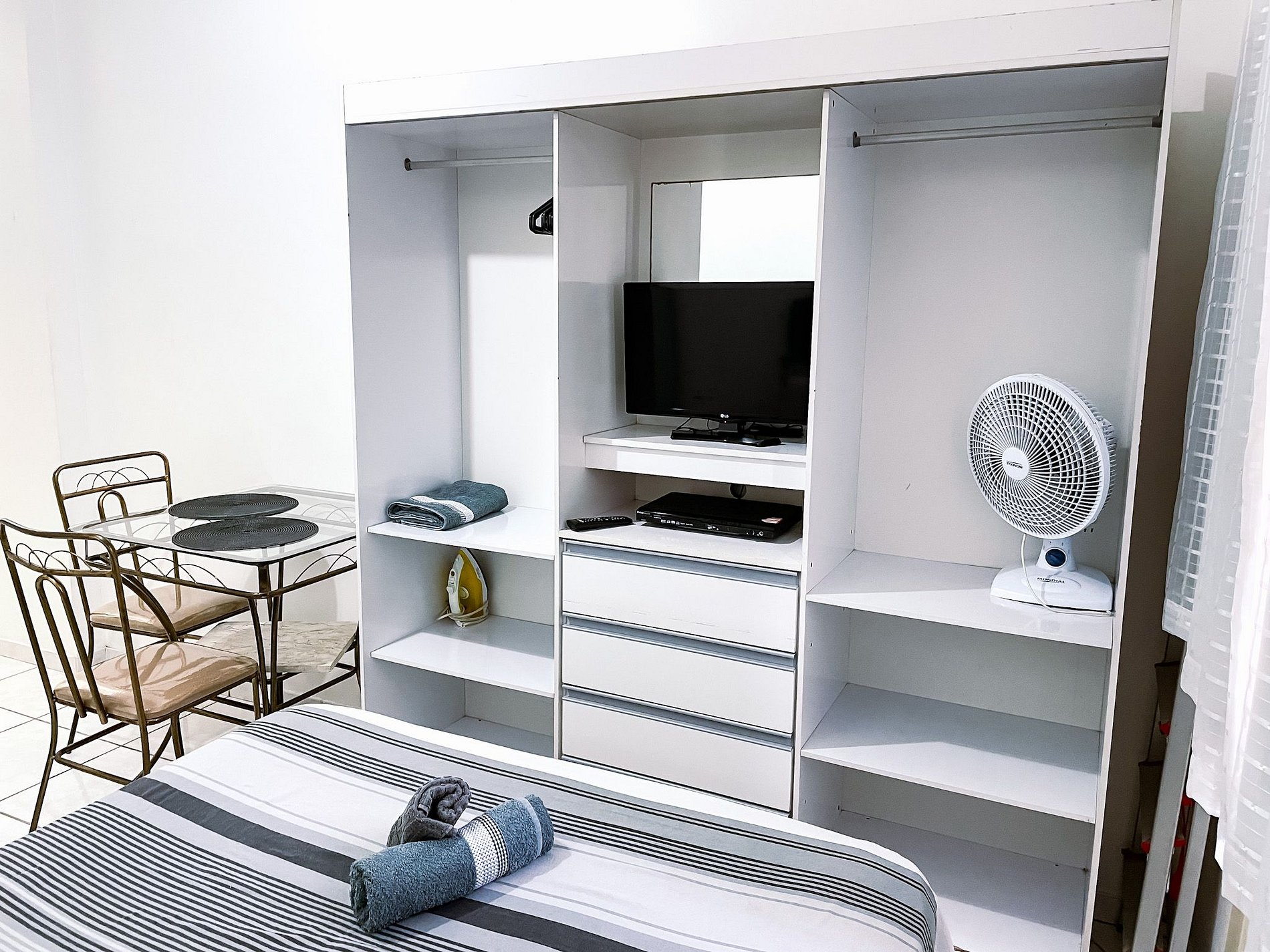 Bem-vindo ao nosso estúdio em Copacabana, para quem precisa de uma estadia confortável e econômica, ele se encontra muito bem localizado entre as ruas Siqueira Campos e Figueiredo de Magalhães, colado com todo o comércio da região, ambiente único, cama de casal, televisão digital com Youtube e Netflix, cozinha com fogão elétrico, micro-ondas, geladeira, ventilador de teto, ar-condicionado e banheiro. Venha desfrutar desse confortável ambiente na melhor localização de Copacabana. Próximo também está o Metrô Siqueira Campos, além de um grande número de restaurantes e supermercados.