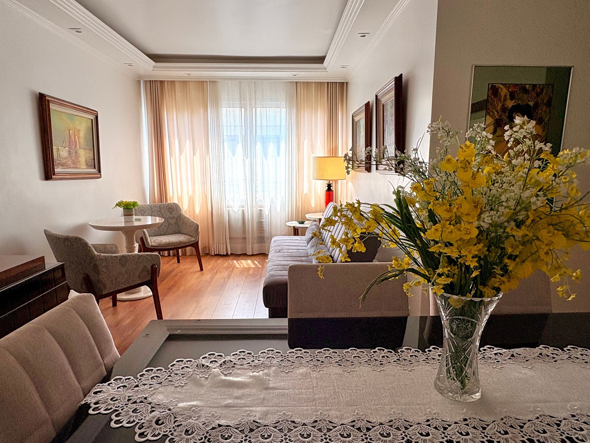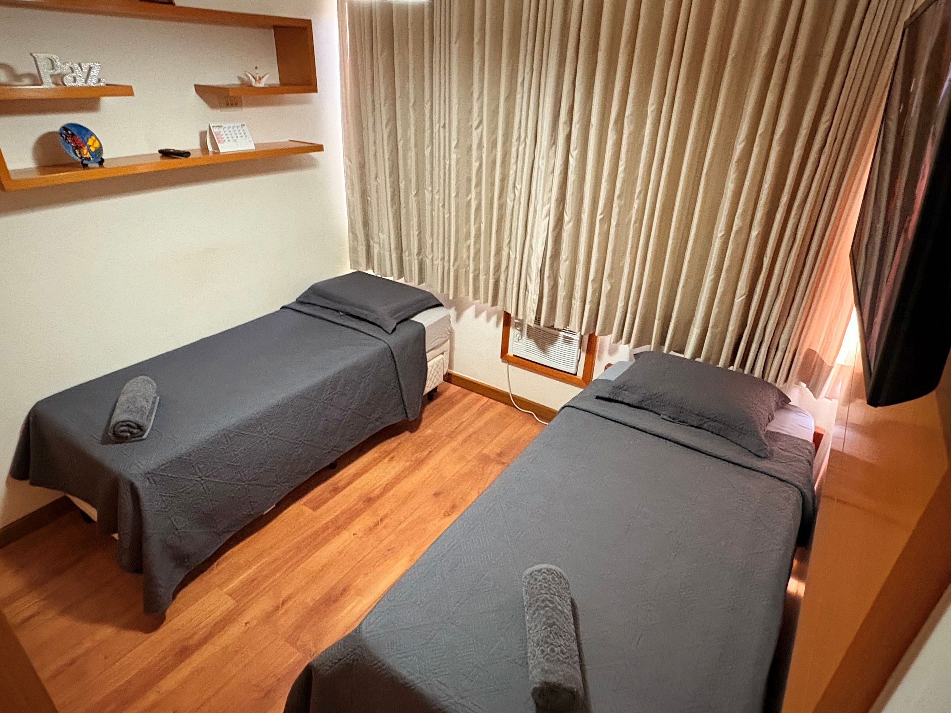 Apartamento com suite (cama de casal) e segundo quarto (duas camas de solteiro) em Copacabana. Armários, ar condiconado e TV nos quartos! Sala grande em dois ambientes com wi-fi, ar condicionado, sofá e mesa de jantar com cadeiras. Cozinha grande com tudo o que você precisa, geladeira, fogão, air fryer, microondas, cafeteira e muito mais! Área de serviço, máquina de lavar e varal. Duas vagas de garagens no prédio! Prédio muito bonito! In Rio Tour, a sua casa no Rio!
