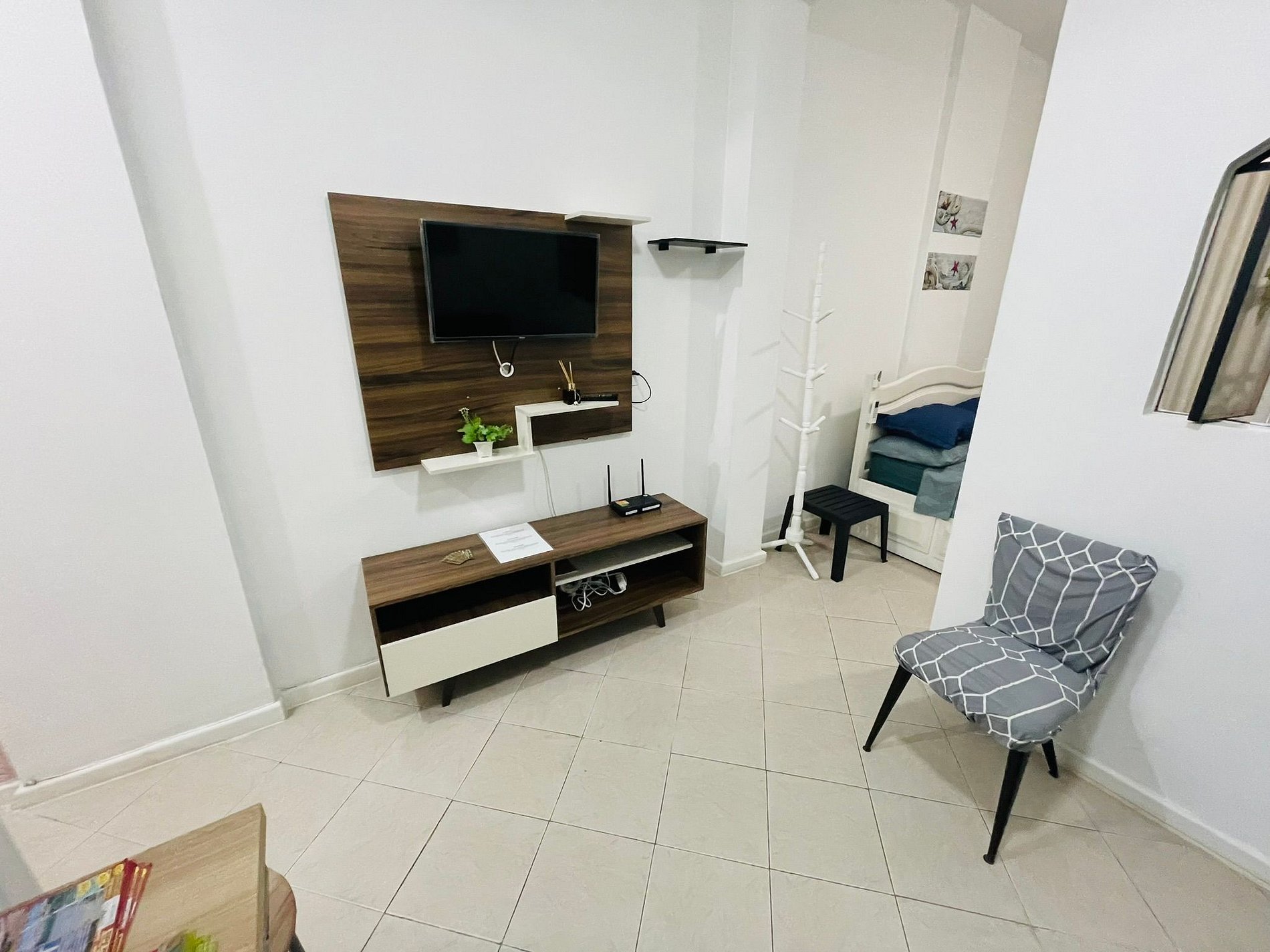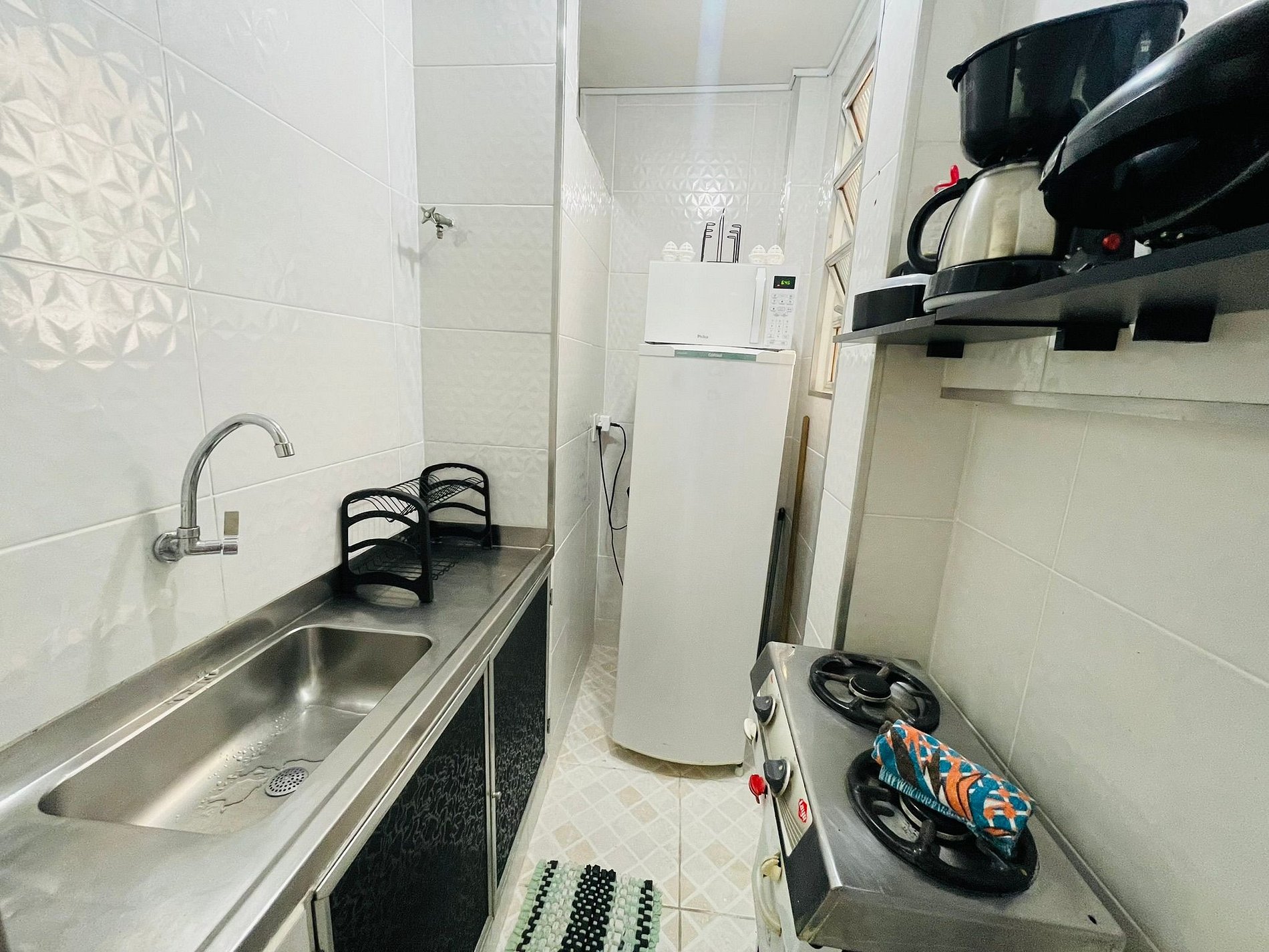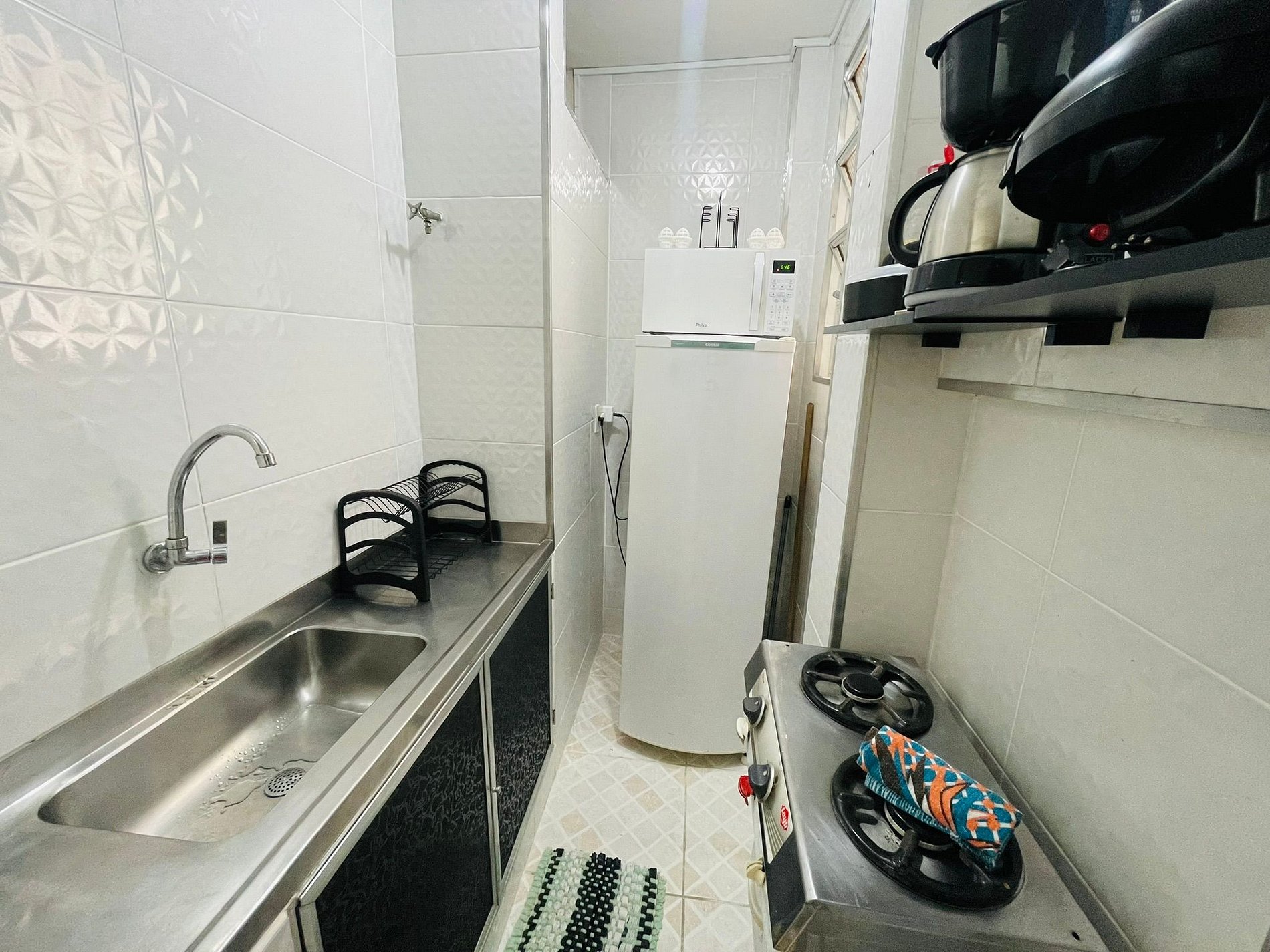 Aconchegante apartamento completo com pequena vista vista lateral ao mar. Possui todos os itens necessários para uma estadia confortável! Sala com Wi-Fi, TV digital com Netflix, mesa com cadeiras e sofá cama individual. No quarto: cama de casal, guarda-roupa e ar-condicionado. Banheiro com chuveiro de água quente. Cozinha completa com fogão duas bocas, geladeira, microondas e cafeteira. Venha desfrutar desse econômico, bem localizado e aconchegante apartamento.