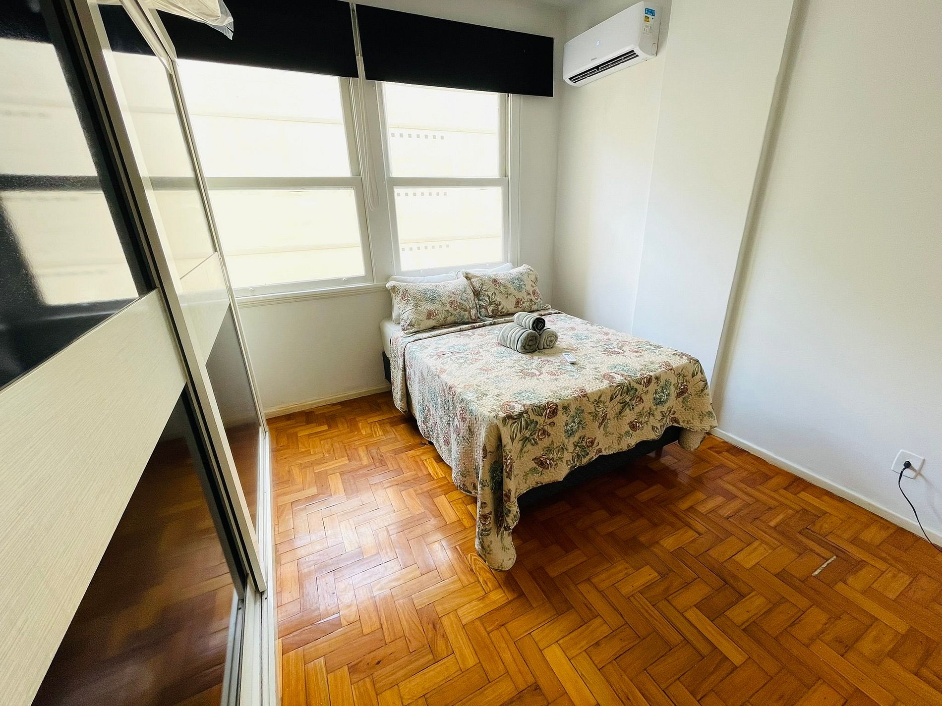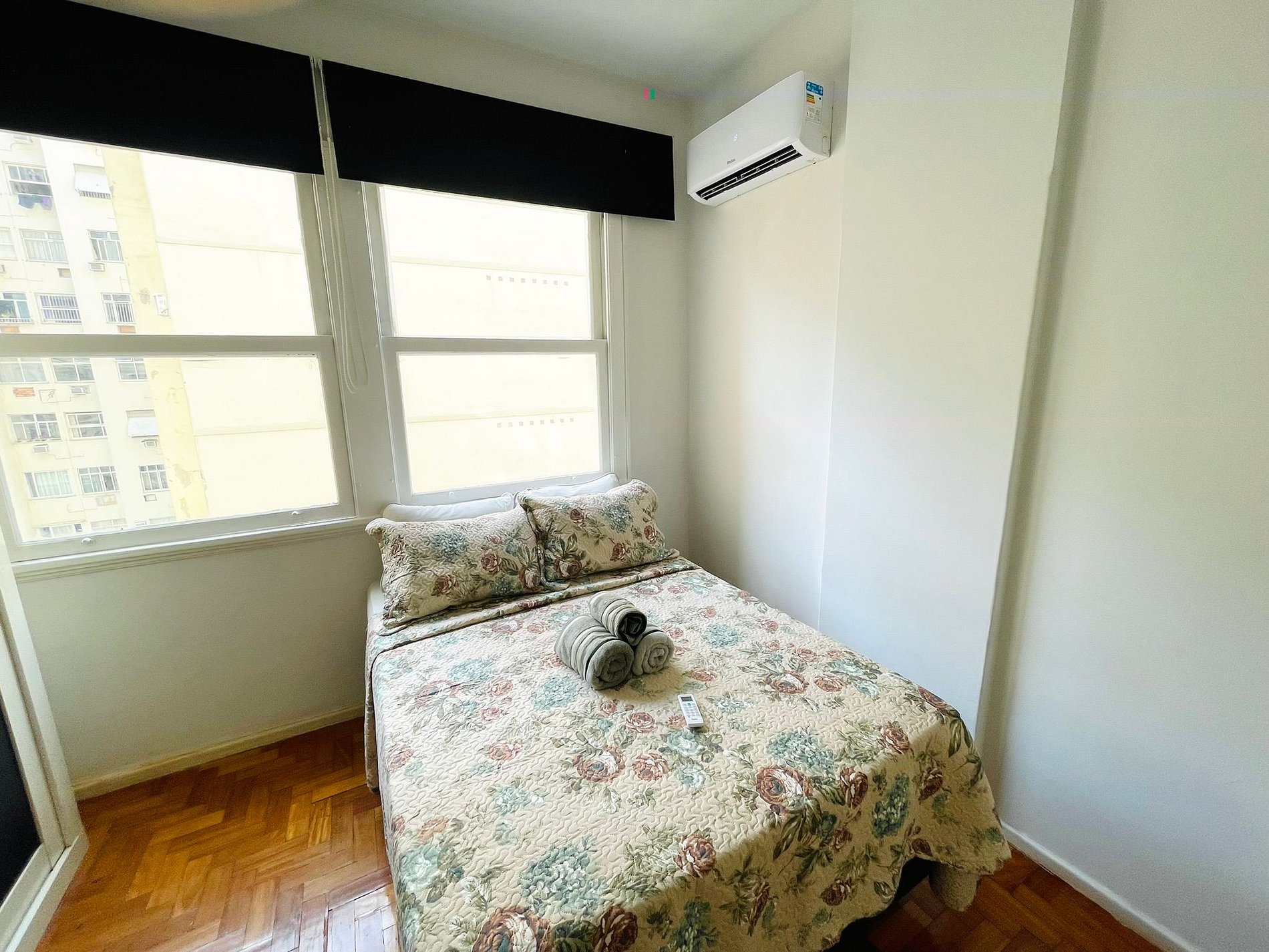 Conheça o nosso excelente sala e quarto para 3 pessoas em Copacabana. A sala conta com um sofá-cama de solteiro, mesa de jantar com 4 cadeiras, TV digital, Wi-Fi e ar condicionado split. No quarto: cama de casal, TV digital, guarda roupas e ar condicionado split. O apartamento também conta com banheiro equipado com box blindex e chuveiro elétrico. Na cozinha tem tudo do que você precisa: fogão, forno, geladeira e sanduicheira.