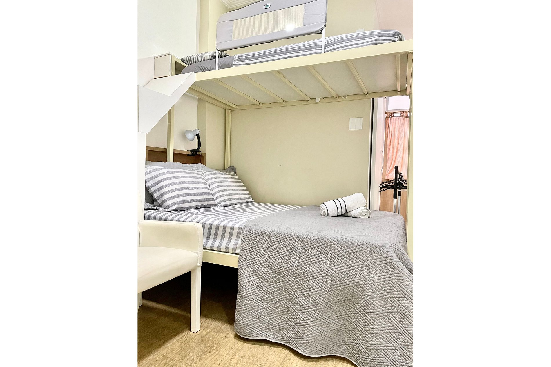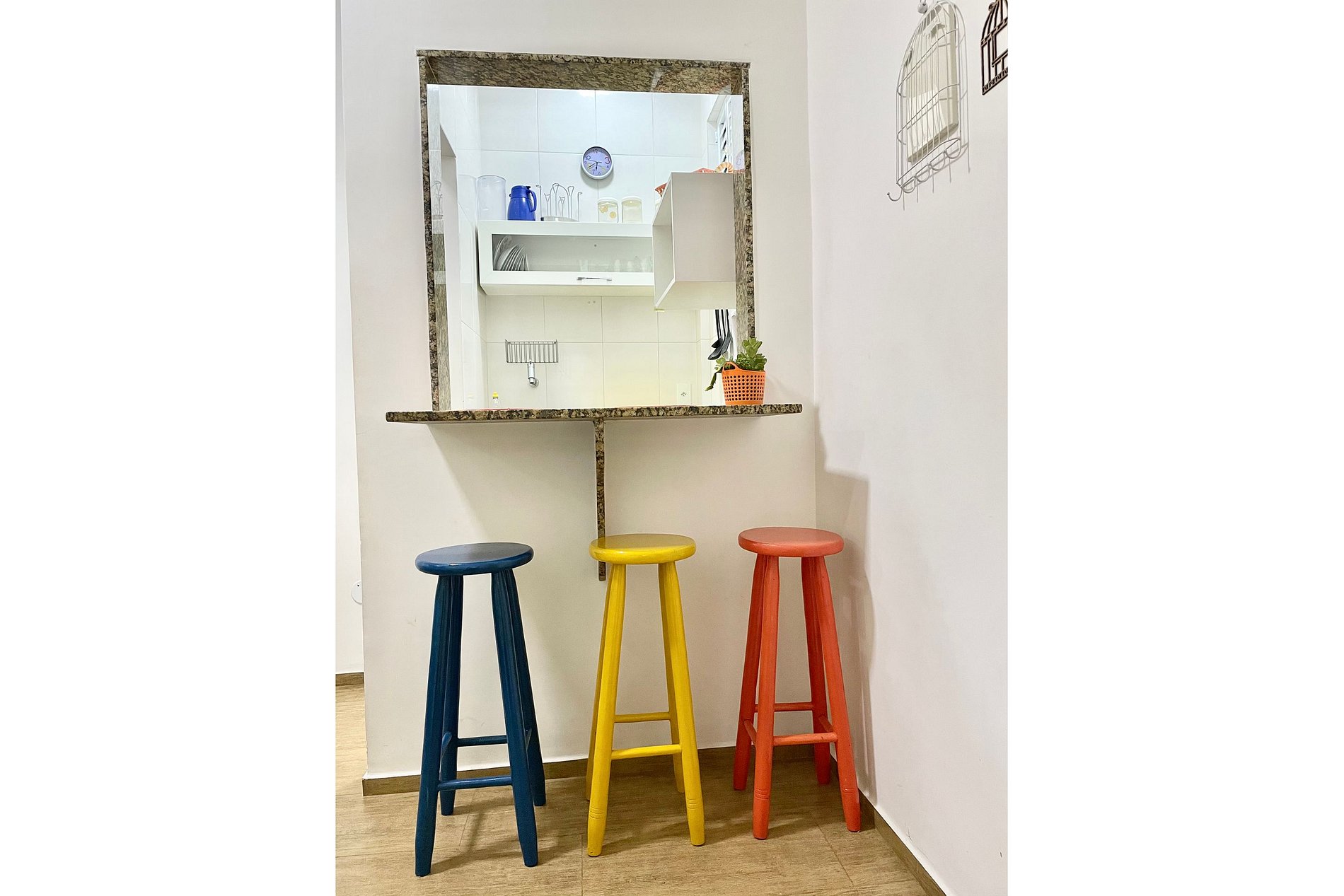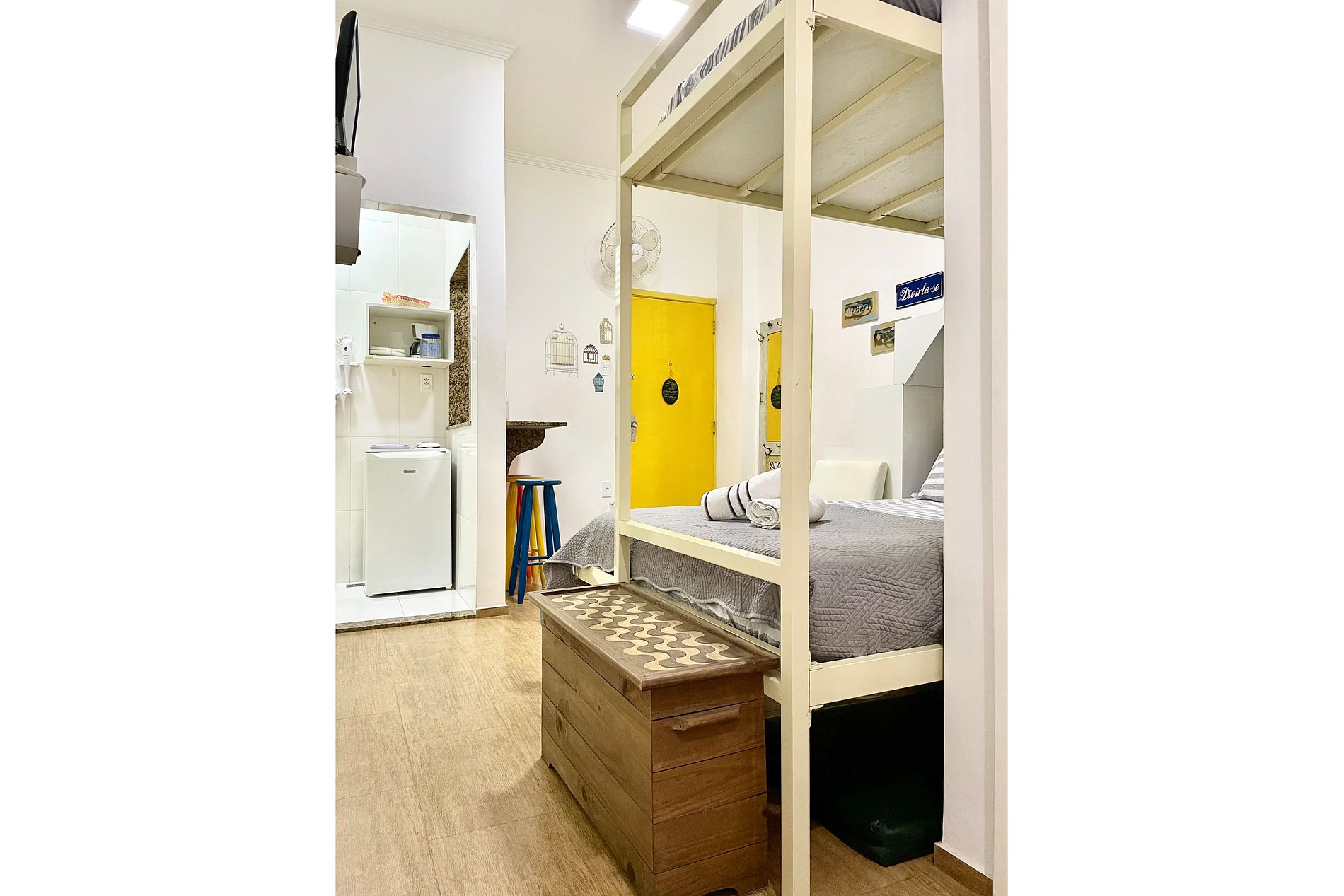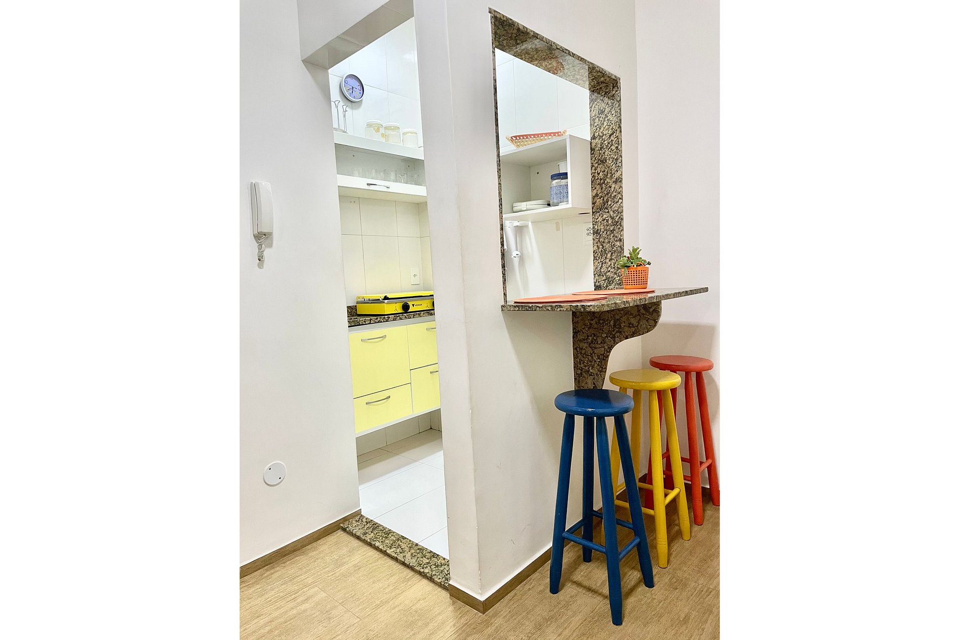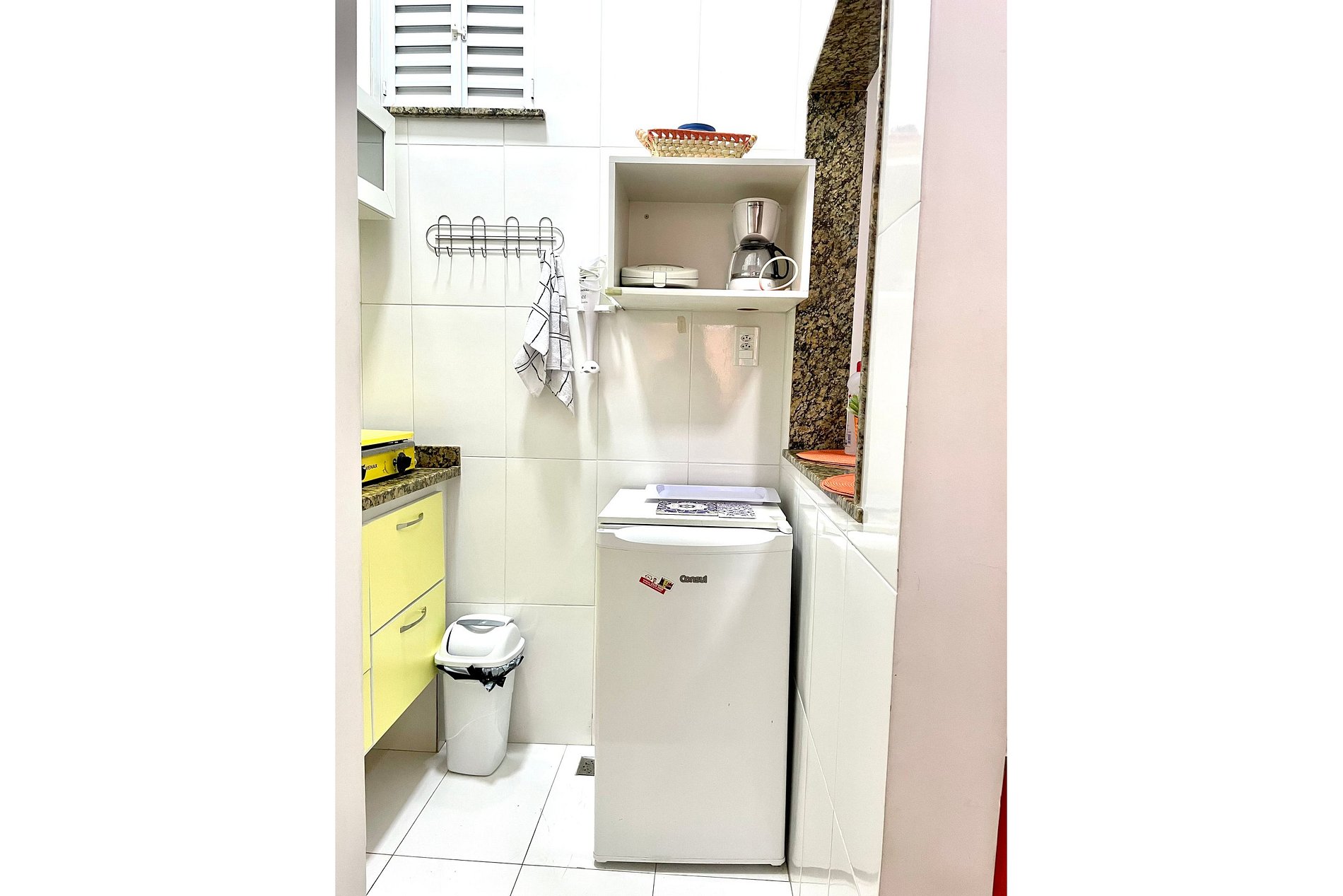 Flat completo com cama de casal e uma cama de solteiro, cozinha americana com fogão duas bocas, frigobar, microondas e utensílios de cozinha. Internet Wi-Fi, TV digital e ar-condicionado. Banheiro completo. Escrivaninha e arara pra roupas. Localizado a uma quadra da praia, próximo a esquina da Júlio de Castilhos com Nossa Senhora de Copacabana. O local tem supermercados, farmácias, restaurantes, além de academia e bares em seu entorno. Venha você também conhecer o Rio de Janeiro.